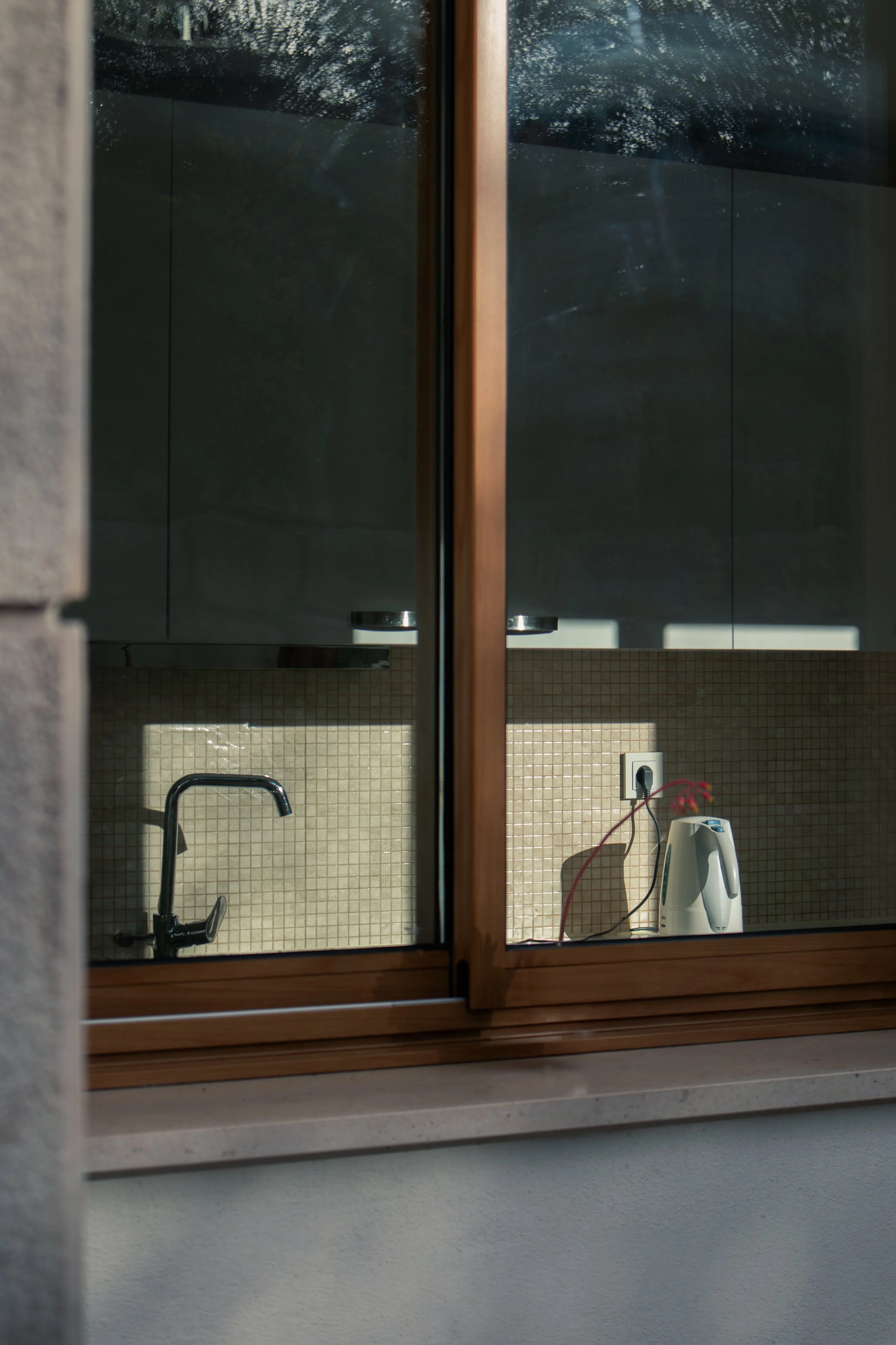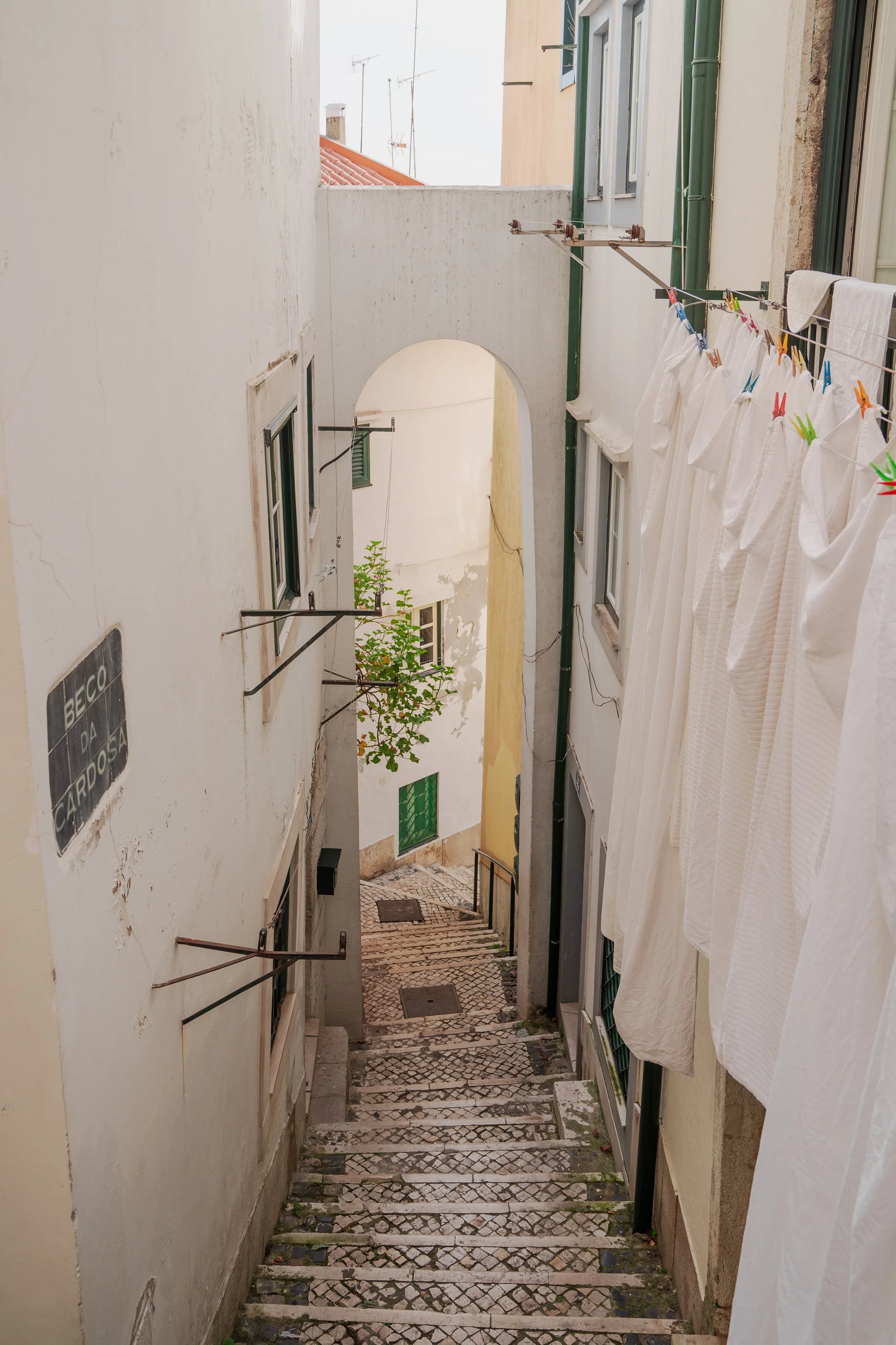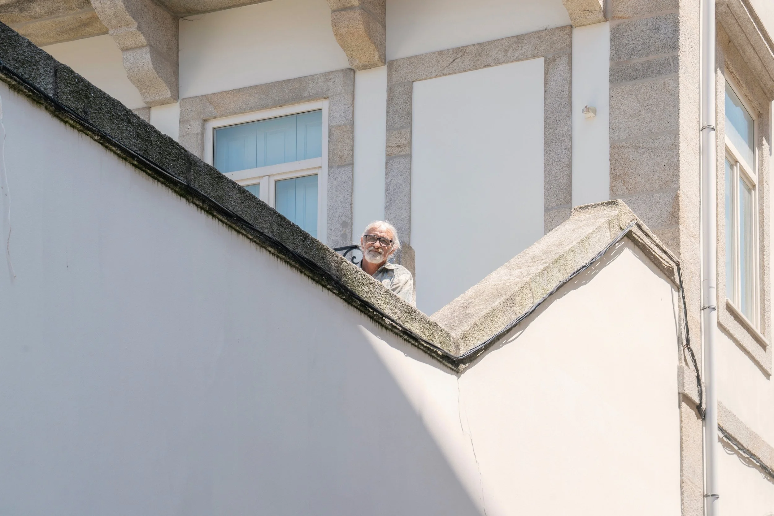 Street photography of a woman walking in front of a building